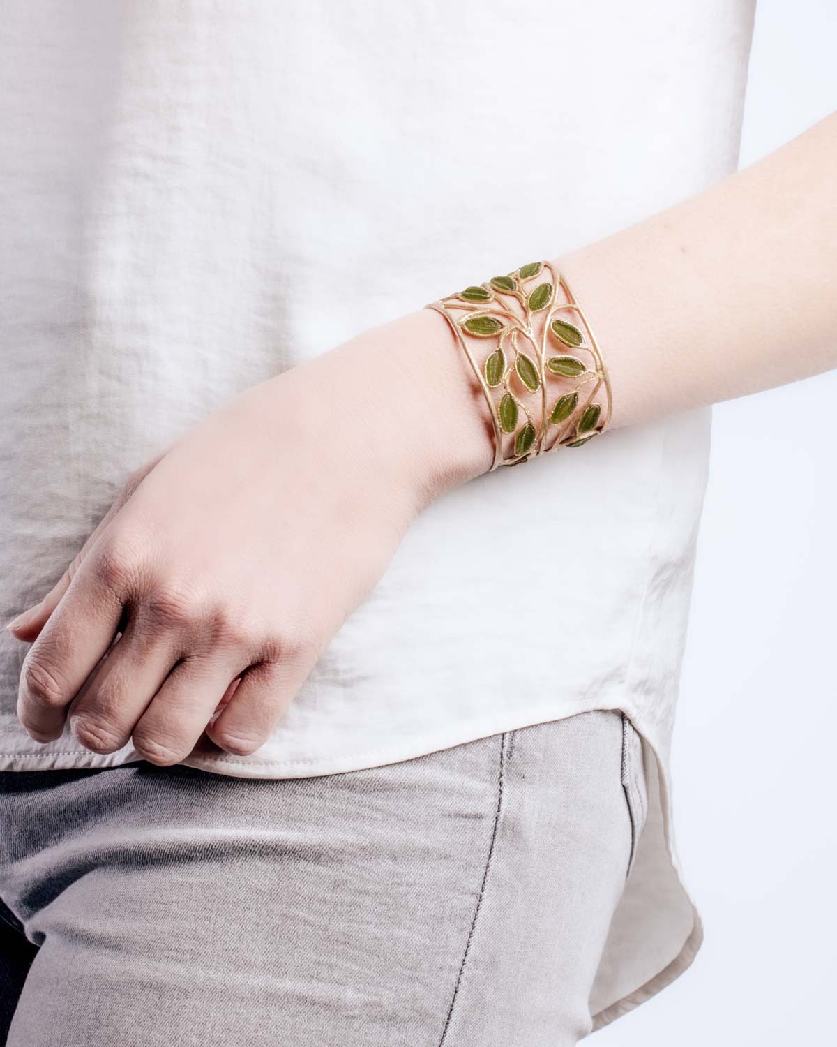 Captivated by the texture of the Sage leaf, Michael Vincent strived to recreate this same pattern in his own jewelry line. Casting directly from the leaf itself, he was able to capture the beveled, hand-cast glass elements, Michael created a similar design in this collection to resemble the way sage leaves lay while rooted.