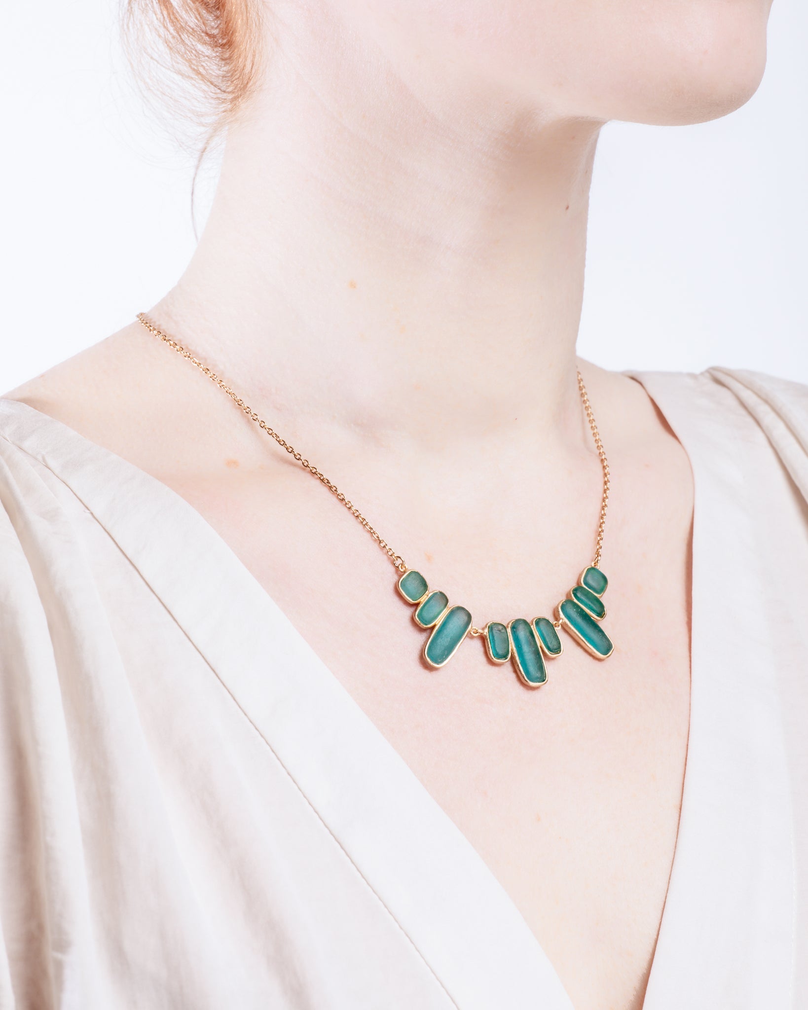 Cast in bronze layered in 24K Gold with cast glass elements.