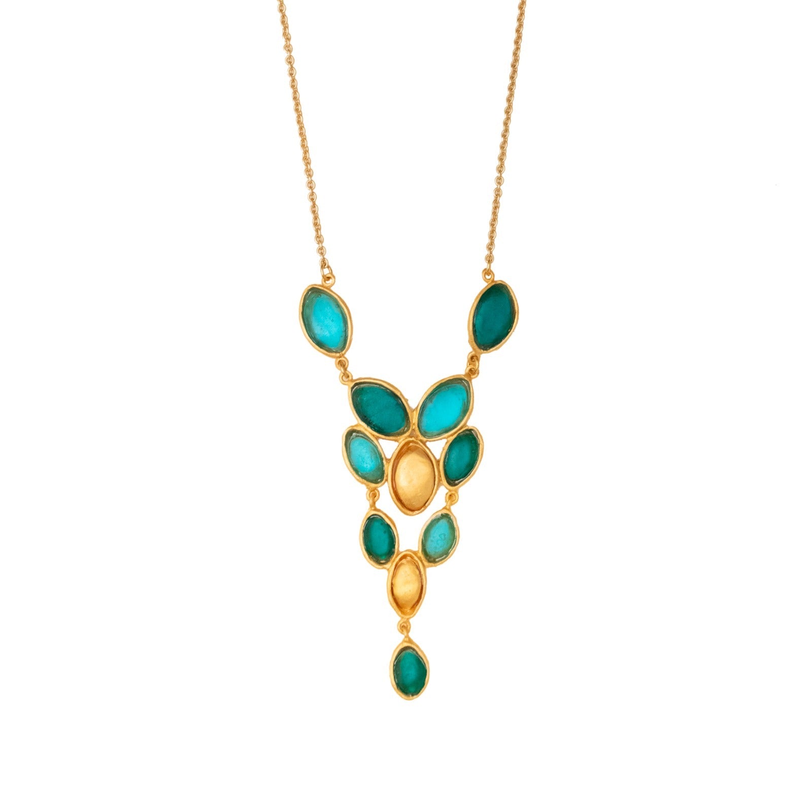 Cast in bronze with a 24K gold finish with cast glass elements.