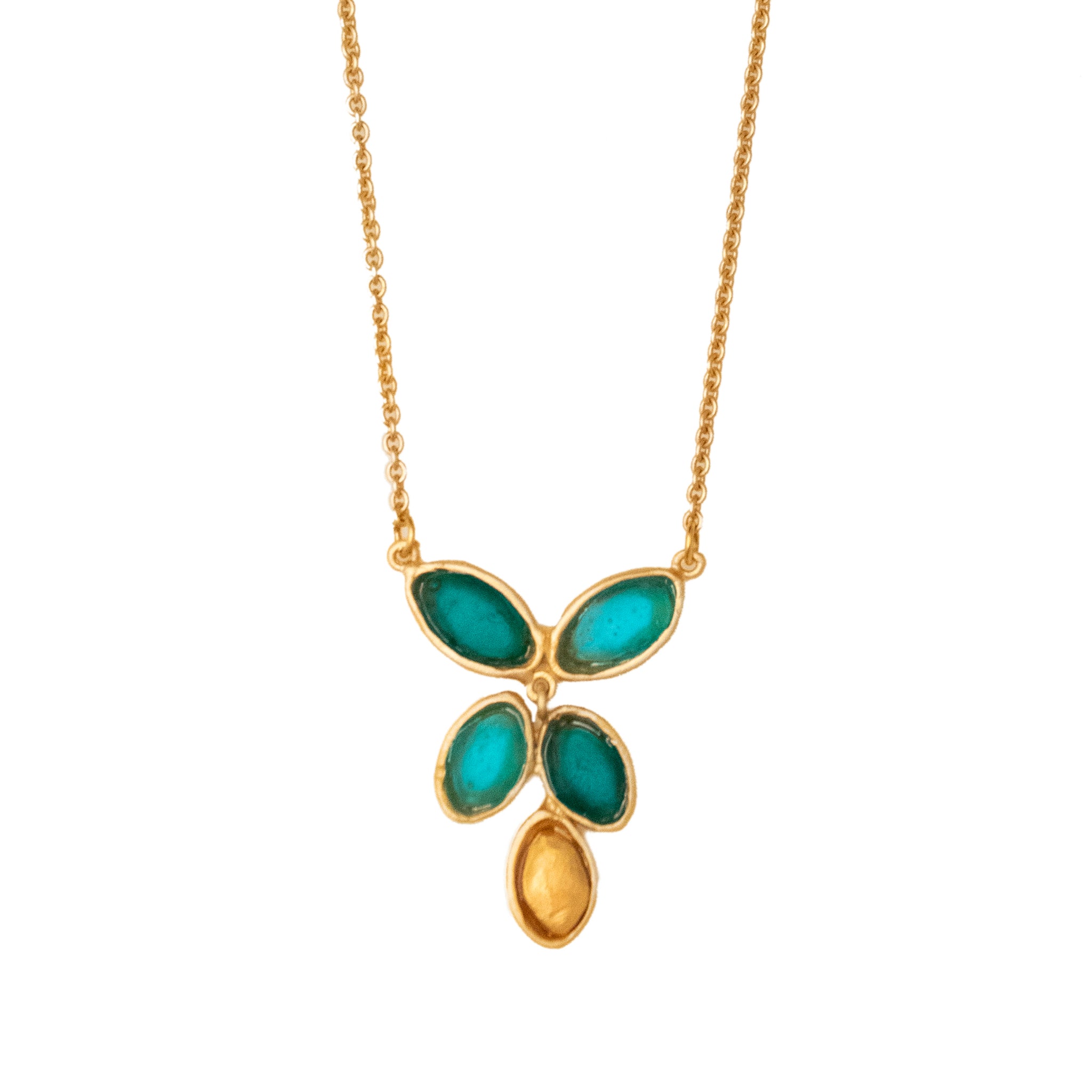 Cast in bronze with a 24K gold finish with cast glass elements.