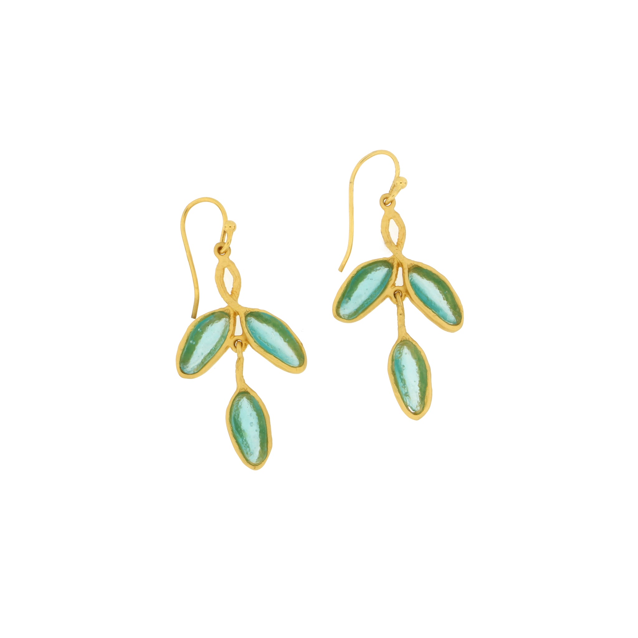 Sage 3-Leaf Drop Wire Earrings - Teal