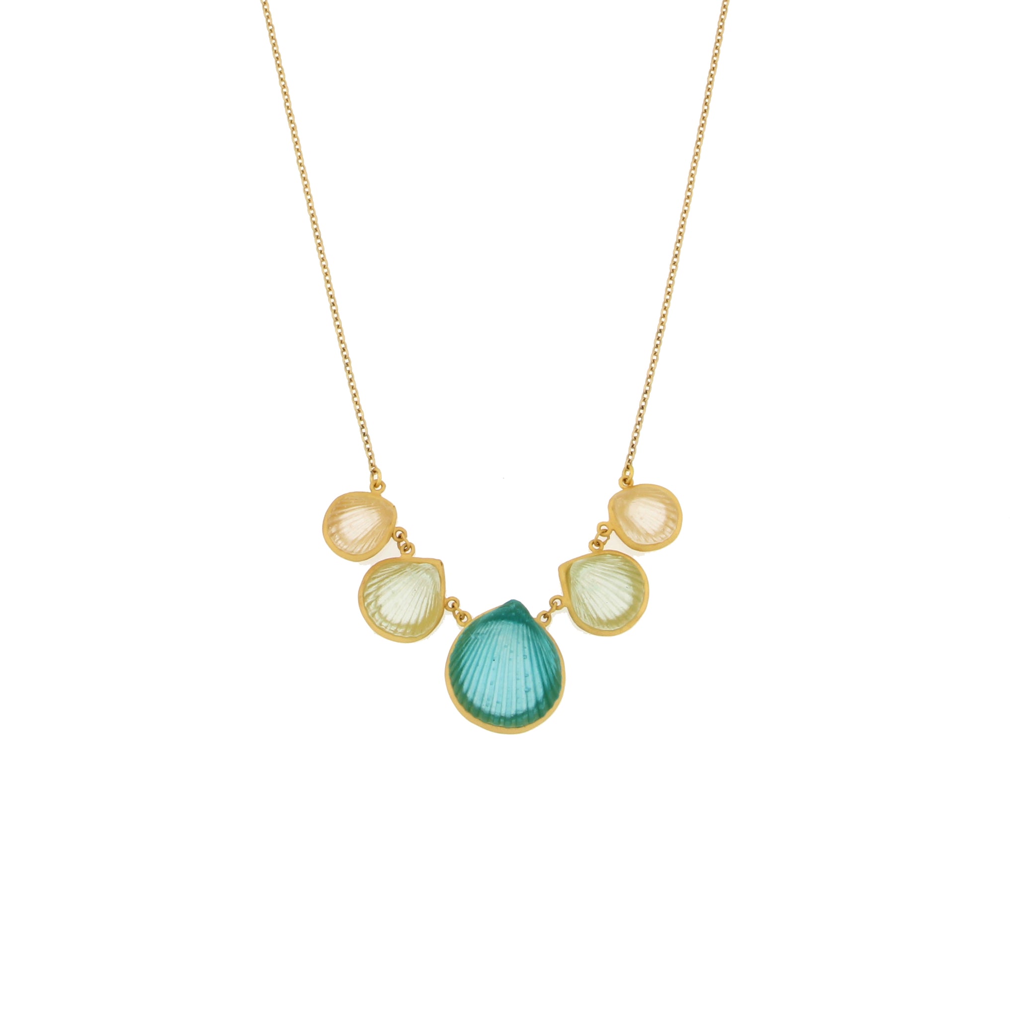 Shell 16" Adj. Necklace - Teal, Pastel Green, Frosted Clear