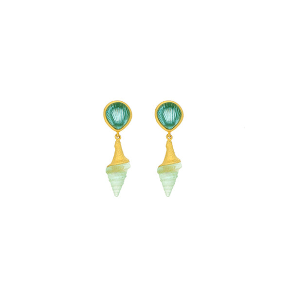 Spiral Shell Drop Post Earrings - Teal and Pastel Green
