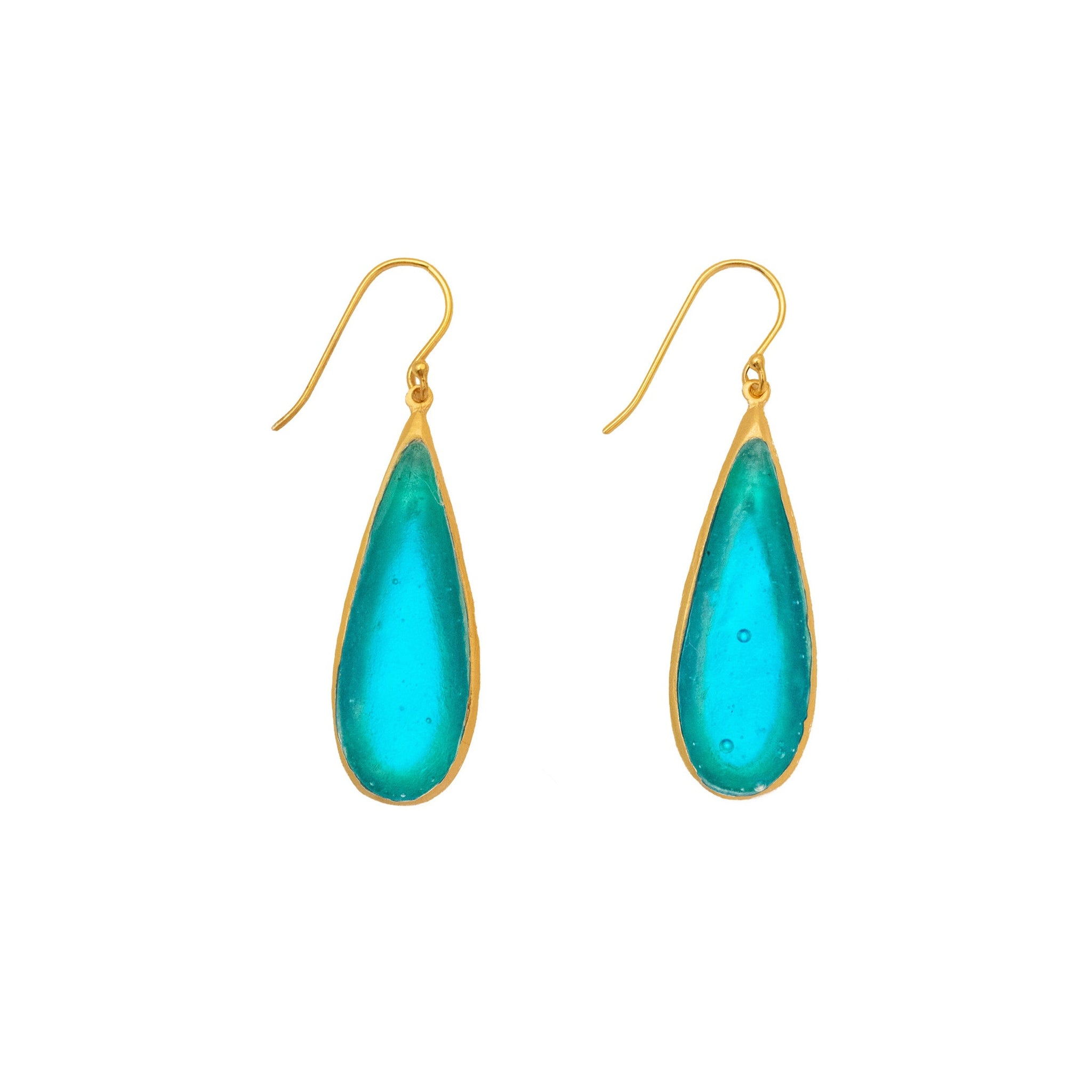 Tear Drop Bubbles Long Wire Earrings - Teal
