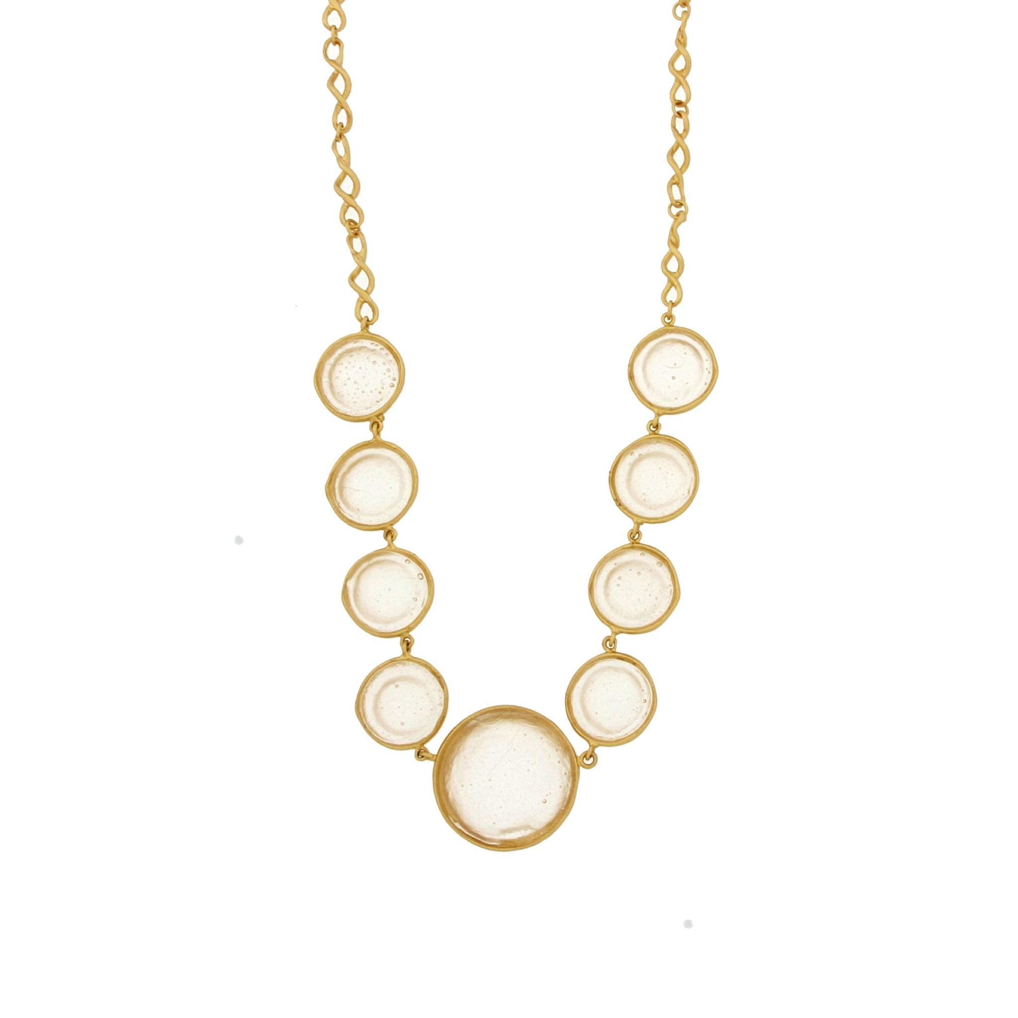 As children play and create soap bubbles, they try to make the largest or most bubbles possible, while we watch, mesmerized by the spheres that drift through the air. The most magical part of this experience is, as the bubbles float into the sky, they take on the different colors of our surroundings. Michael Vincent captures this playfulness in his best-seller collections, Bubbles, by reflecting on the joy and colors. This modern designed jewelry implies the shapes and colors bubbles, portrayed through the glass.