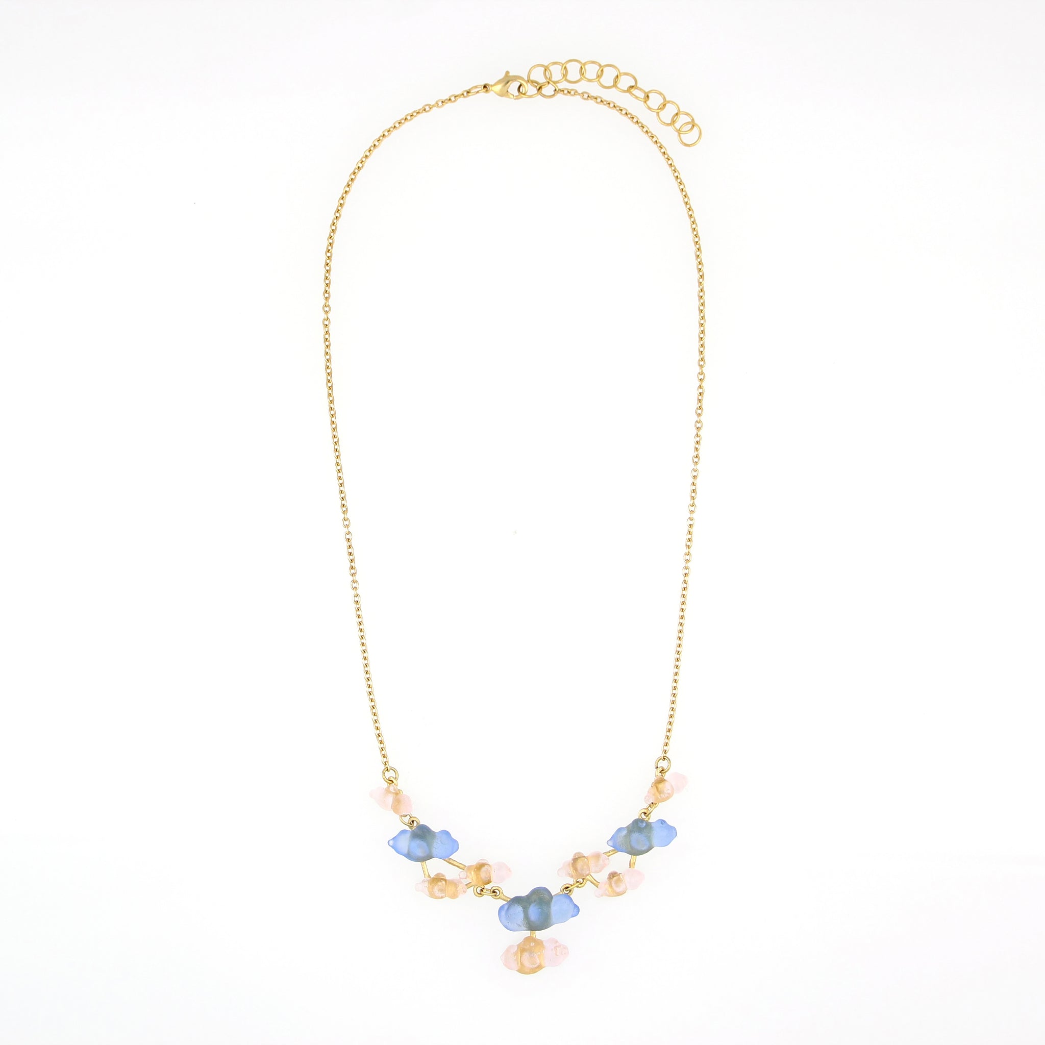 Cloud 16" Adj. Statement Necklace - Light Blue and Light Pink