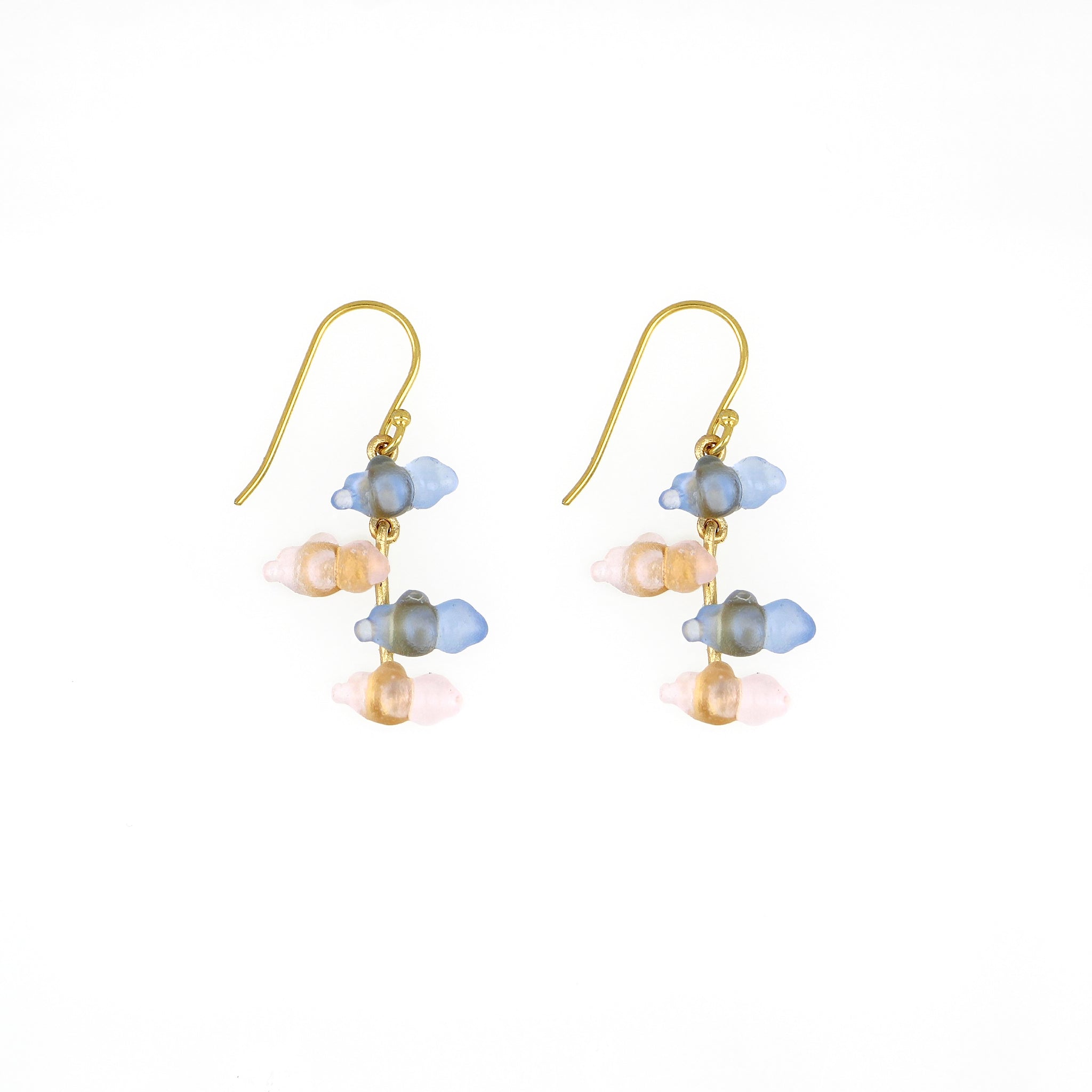 Cloud Dangle Wire Earrings - Light Blue and Light Pink