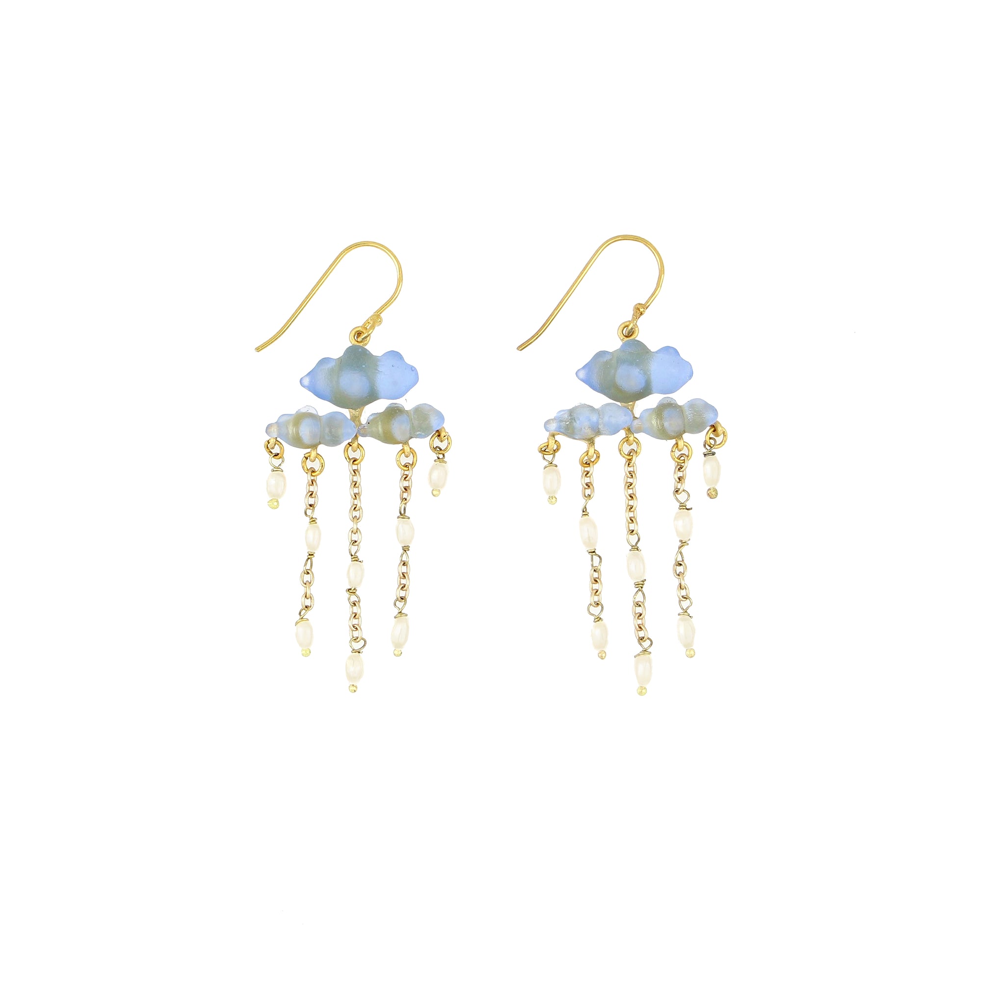 Cloud Statement Wire Earrings with Pearls - Light Blue
