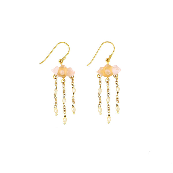Cast in bronze with a 24K gold finish with cast glass elements. Accented with fresh water pearls.