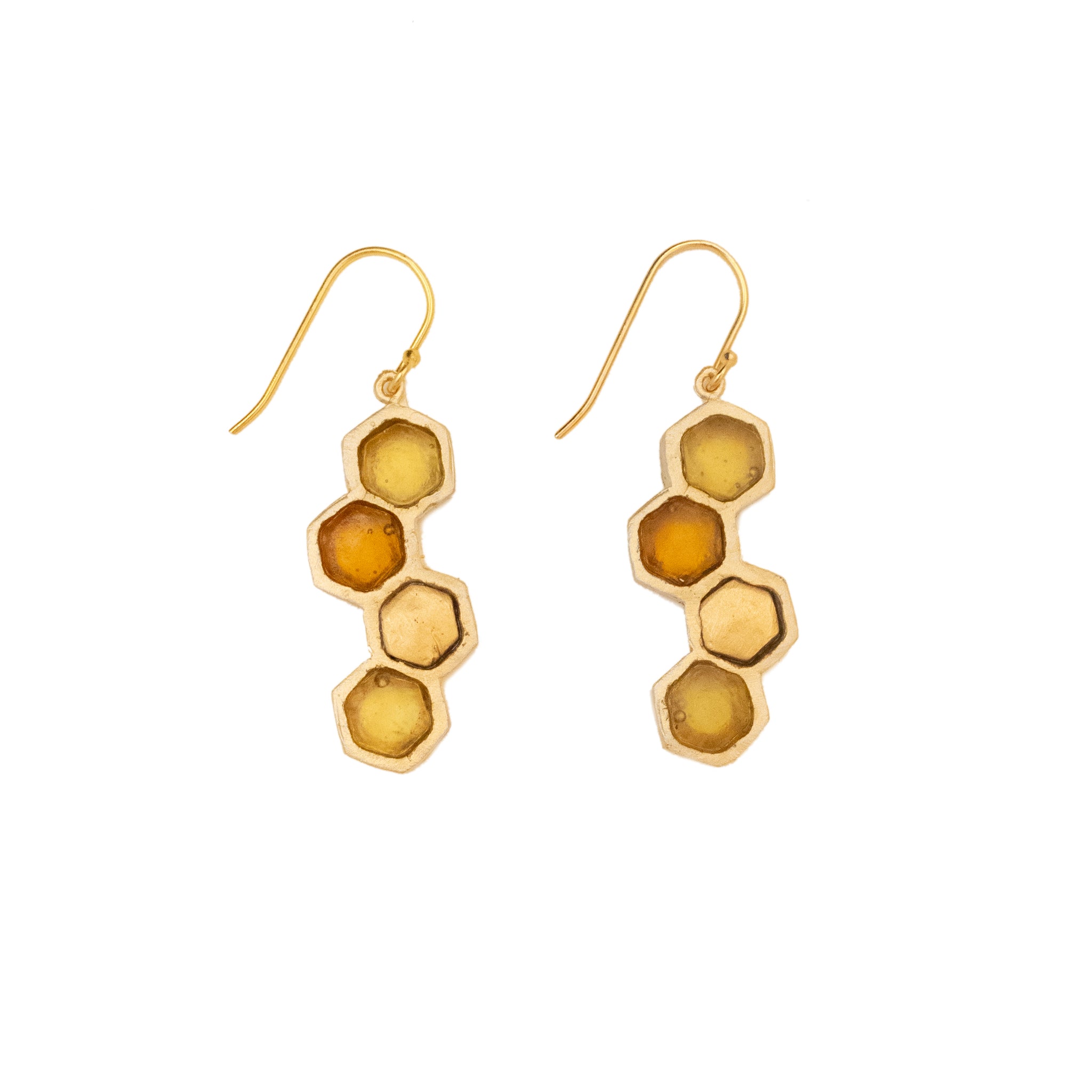 Honeycomb Wire Earrings - Amber and Yellow